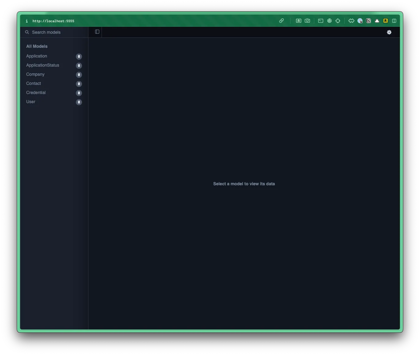 npx prisma studioThis will open a new tab in your default browser at http://localhost:5555.